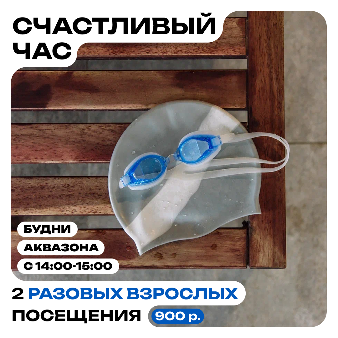 В аква-зоне с 14:00 до 15:00 в будние дни: 2 разовых взрослых посещения - 800 рублей!